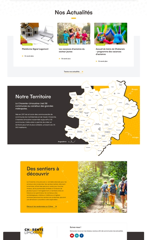 Le site de la Communauté de Communes de Charente Limousine, regroupant 58 communes au nord-est de la Charente, nécessitait une refonte technique et structurelle. L’ancien site, n’était plus maintenu ni conforme aux standards actuels du web. La refonte a permis de moderniser le site de la CC et de faciliter la contribution des contenus pour les agents afin d’avoir une solution perènes.