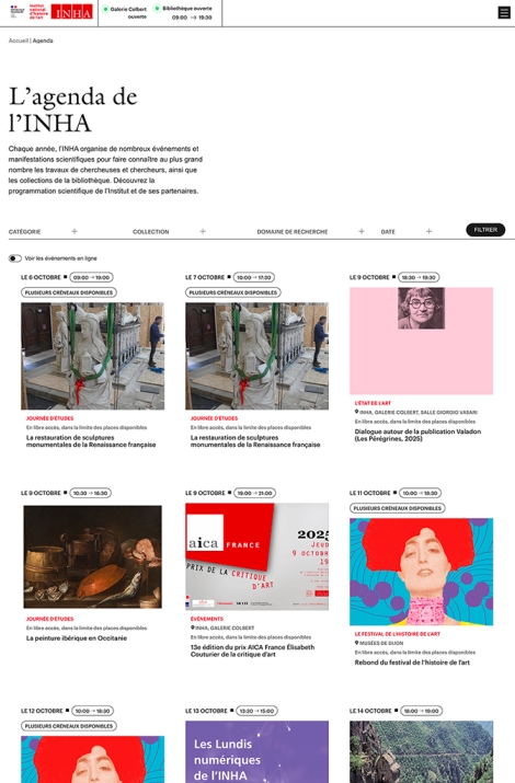 Un site repensé pour la recherche : base documentaire unifiée, moteur de recherche performant, affichage en temps réel des galeries ouvertes, agenda interactif et accessibilité renforcée.