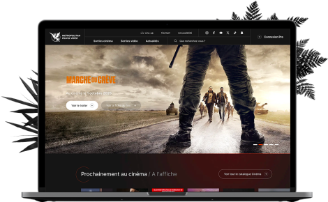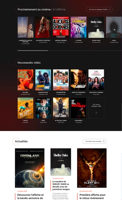 Une vitrine moderne et fonctionnelle : synchronisation automatique des fiches films, accès sécurisé à des ressources privées, et mise en avant des dernières productions.
