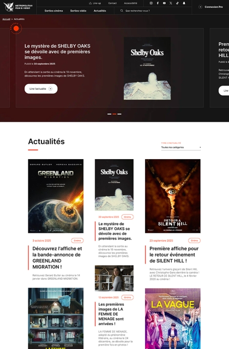 Metro Films a souhaité moderniser son portail web France afin d’unifier sa communication et de fluidifier la diffusion de ses productions. Le site met en avant ses créations avec une identité visuelle renouvelée et une gestion automatisée des contenus grâce à la connexion avec la GED.
